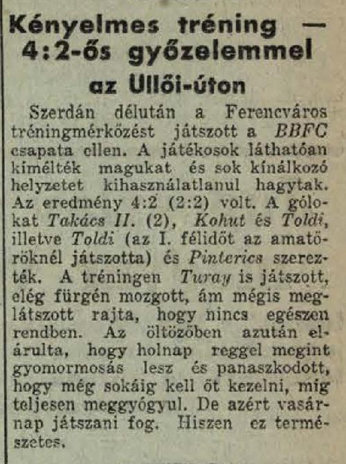 1931.X.21. Ferencváros – BBFC 4:2 (edzőmérkőzés)