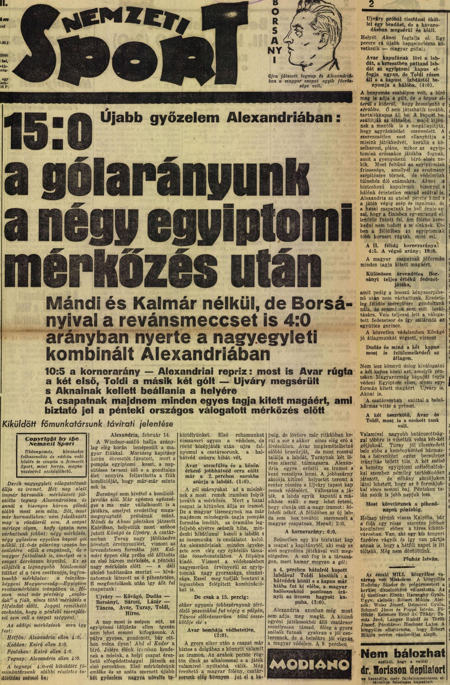 1932.II.14. Budapesti profi-kombinált – Alexandria 4:0