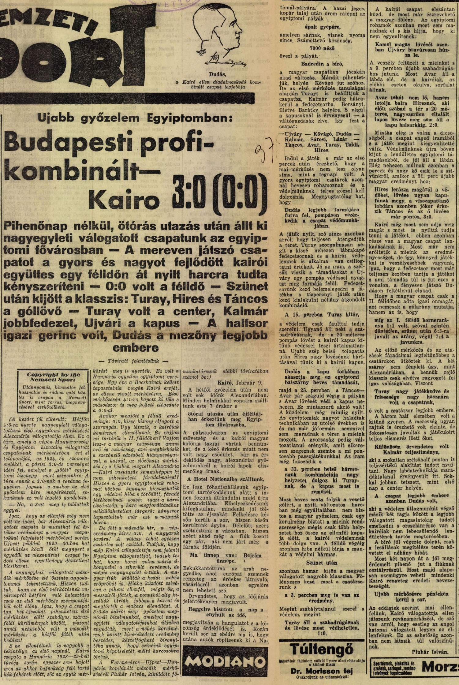 1932.II.9. Budapesti profi-kombinált – Kairó 3:0