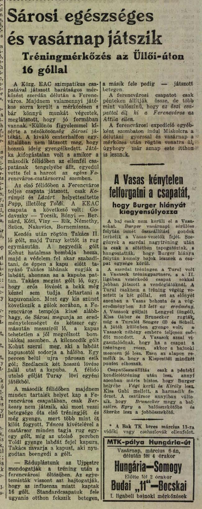 1932.III.2. Ferencváros – Közgazdasági EAC 16:0 (edzőmérkőzés)