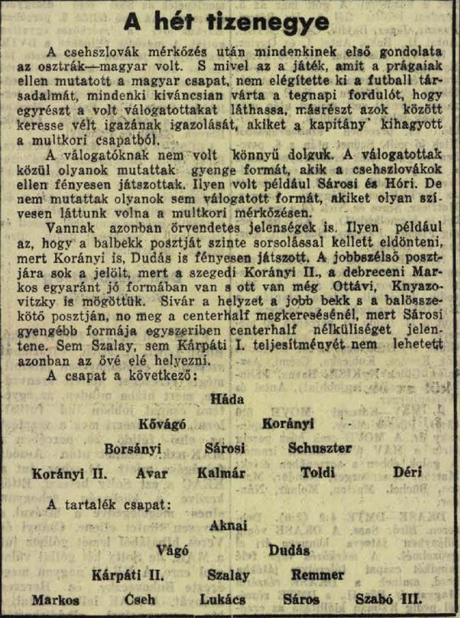1932.IX.25. Ferencváros – Budai „11” 3:0 Közzétéve: 2009. február 1. vasárnap | Szerző: K@rcsi A budai csapat a mezőnyben nemcsak egyenrangú ellenfele volt a bajnokcsapatnak, de kitűnő halfsorával felül is múlta Vélemény, hozzászólás? Válasz megszakításaAz e-mail címet nem tesszük közzé. A kötelező mezőket * karakterrel jelöltük Hozzászólás * Név * E-mail cím * Honlap Δ