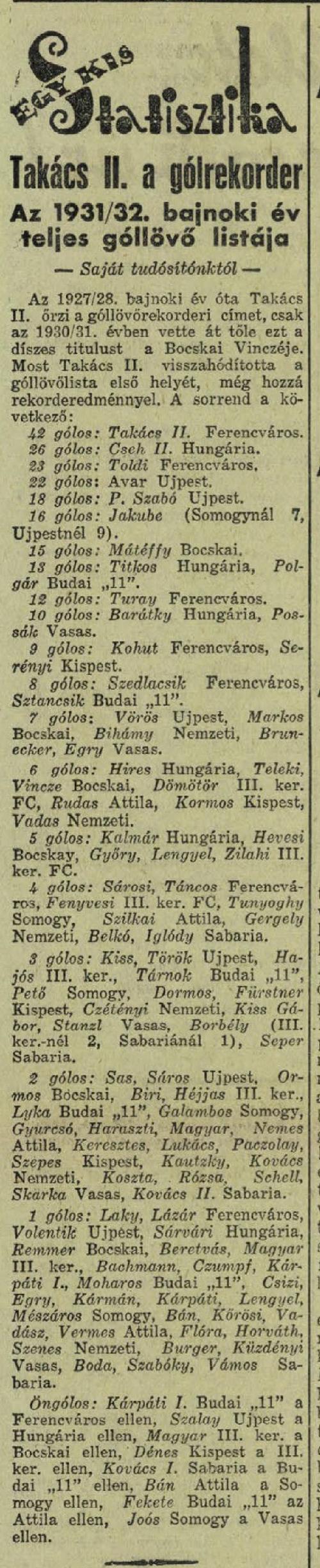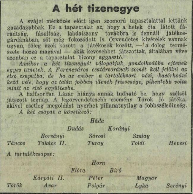 1932.VI.12. Ferencváros – Budai „11” 3:1 Közzétéve: 2009. február 1. vasárnap | Szerző: K@rcsi Pontveszteség nélkül nyerte a Ferencváros harmadik profibajnokságát A budai csapat kitűnő játéka élvezetessé tette a játékot s ugyancsak megnehezítette a Ferencváros utolsó bajnoki győzelmét Vélemény, hozzászólás? Válasz megszakításaAz e-mail címet nem tesszük közzé. A kötelező mezőket * karakterrel jelöltük Hozzászólás * Név * E-mail cím * Honlap Δ