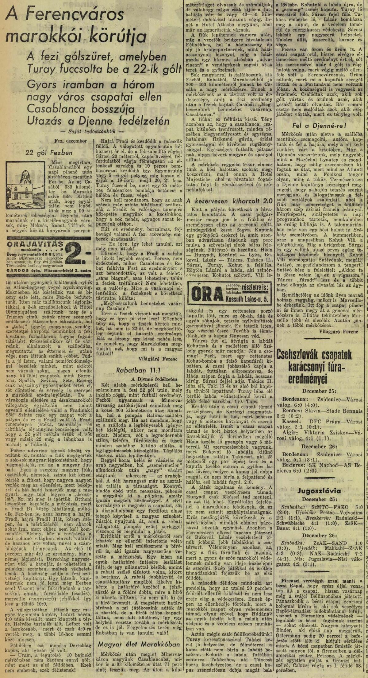 1932.XII.18. US Marocaine – Ferencváros 0:2