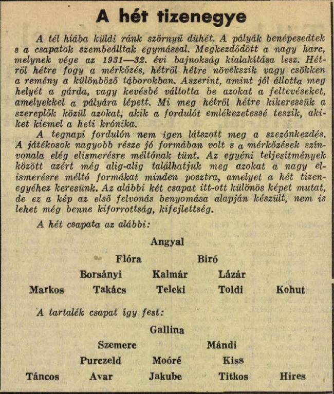 « 1932.II.24. Ferencváros – Etc FC 10:2 (edzőmérkőzés) 1932.III.2. Ferencváros – Közgazdasági EAC 16:0 (edzőmérkőzés) »