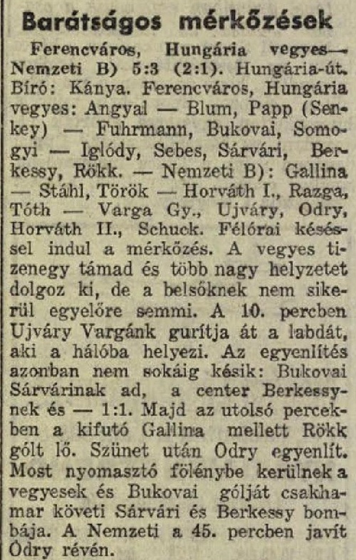 Barátságos mérkőzések: Ferencváros, Hungária vegyes—Nemzeti B) 5:3 (2:1)