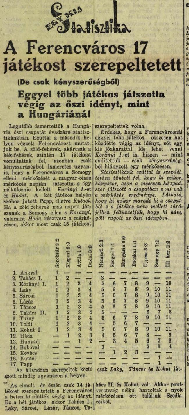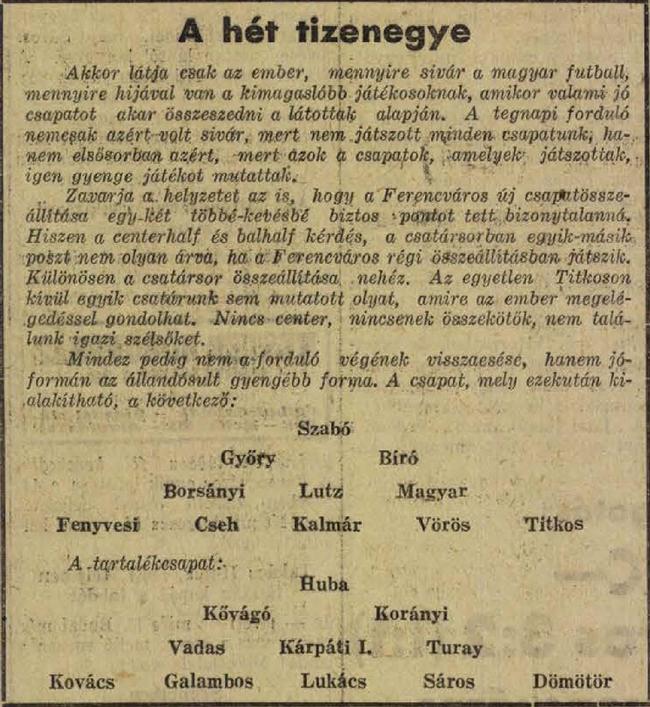 1932.XII.4. III. ker. FC – Ferencváros 3:2 Közzétéve: 2009. február 1. vasárnap | Szerző: K@rcsi Örülhet a Ferencváros, hogy csak így kapott ki, mert emberemlékezet óta nem játszott ilyen gyengén Vélemény, hozzászólás? Válasz megszakításaAz e-mail címet nem tesszük közzé. A kötelező mezőket * karakterrel jelöltük Hozzászólás * Név * E-mail cím * Honlap Δ