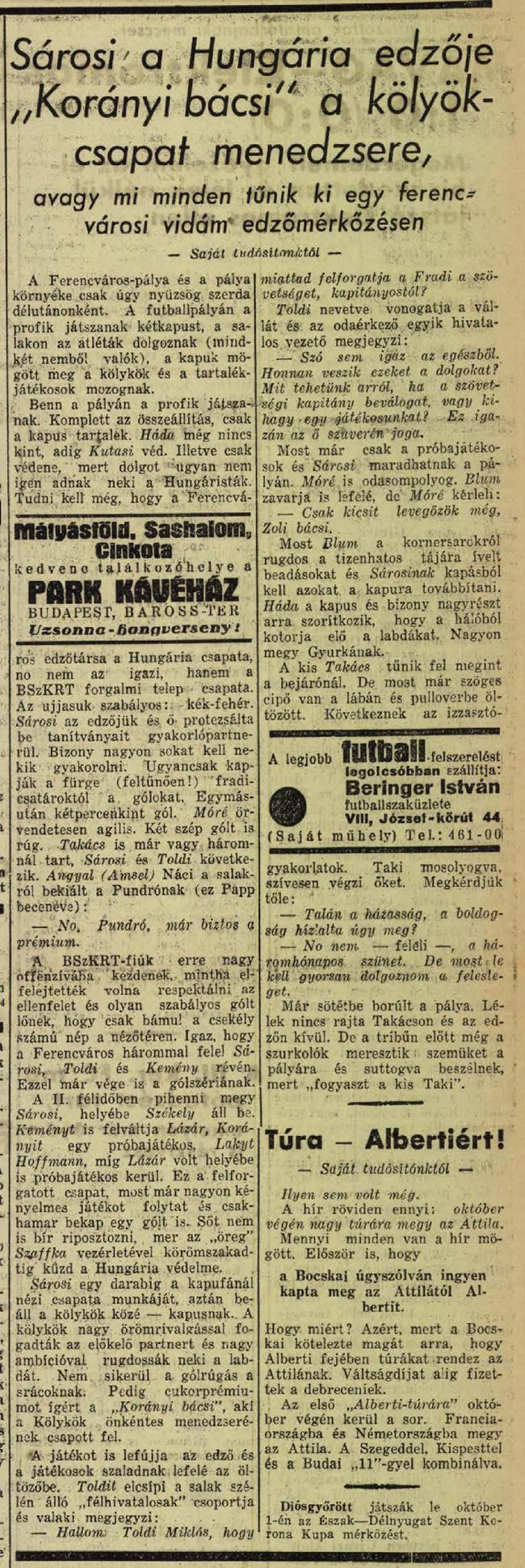 Kategória: 1933/34 | Címke: 1933/34, edzőmérkőzés, Sárosi György dr., Szikra Hungária