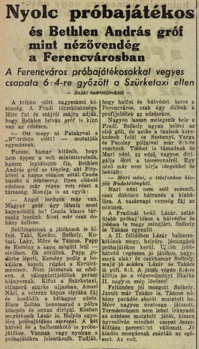 1933.IX.6. Ferencváros – Szürketaxi 6:4 (edzőmérkőzés)