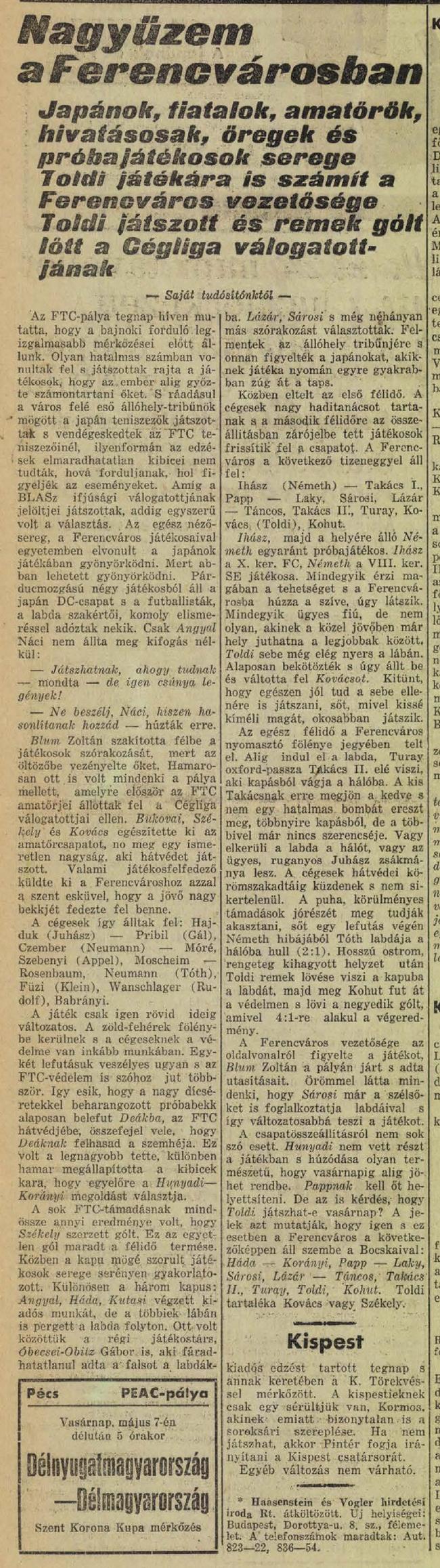 1933.V.4. Ferencváros, FTC vegyes – Cégliga válogatott 5:1 (edzőmérkőzés)