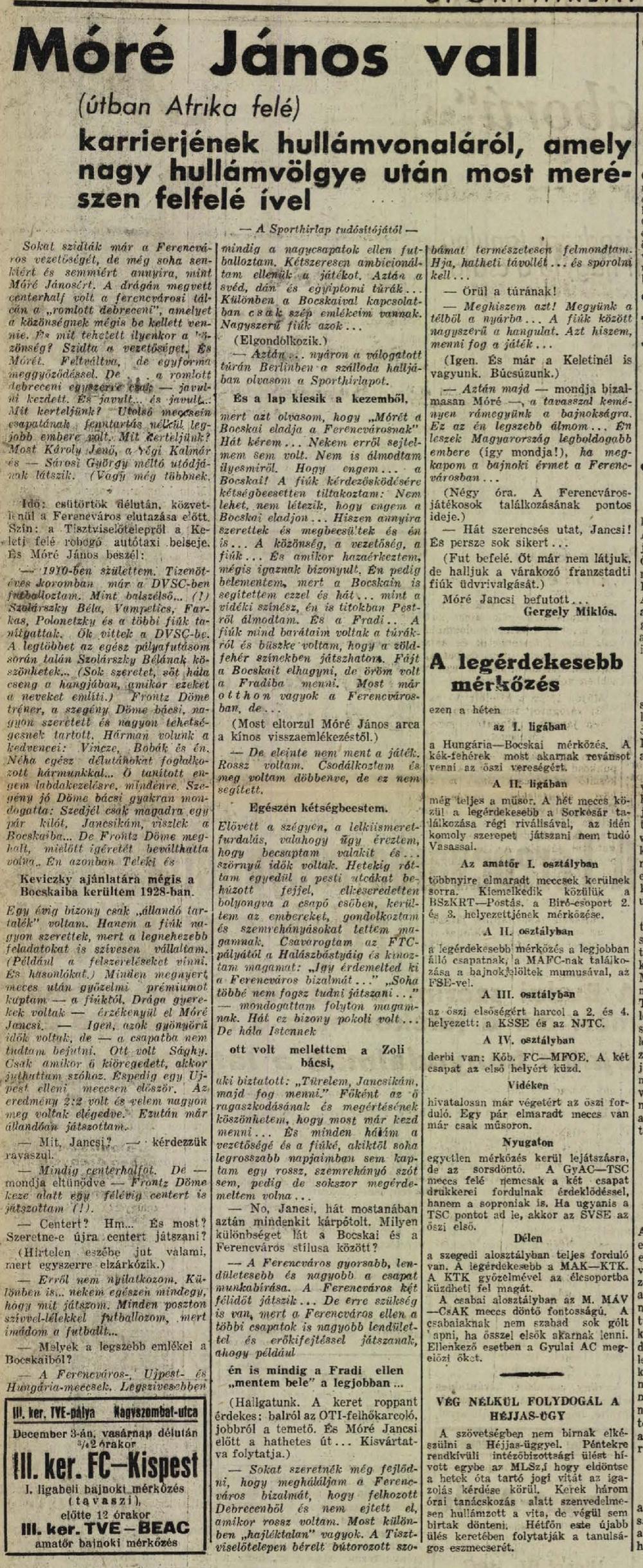 1933.XII.2. Young Fellows – Ferencváros 2:2 Közzétéve: 2009. február 2. hétfő | Szerző: K@rcsi A Ferencváros döntetlennel kezdte túráját Móré János vall (útban Afrika felé) karrierjének hullámvonaláról amely nagy hullámvölgye után most merészen felfelé ível Vélemény, hozzászólás? Válasz megszakításaAz e-mail címet nem tesszük közzé. A kötelező mezőket * karakterrel jelöltük Hozzászólás * Név * E-mail cím * Honlap Δ