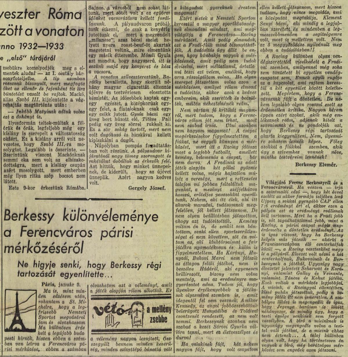 1933.I.1. Racing Club de Paris – Ferencváros 2:2 Közzétéve: 2009. február 2. hétfő | Szerző: K@rcsi Feneketlen sárban vívta igen kemény mérkőzését a Ferencváros Párisban Match (Paris) Source: Bibliothèque nationale de France 1933 Vélemény, hozzászólás? Válasz megszakításaAz e-mail címet nem tesszük közzé. A kötelező mezőket * karakterrel jelöltük Hozzászólás * Név * E-mail cím * Honlap Δ