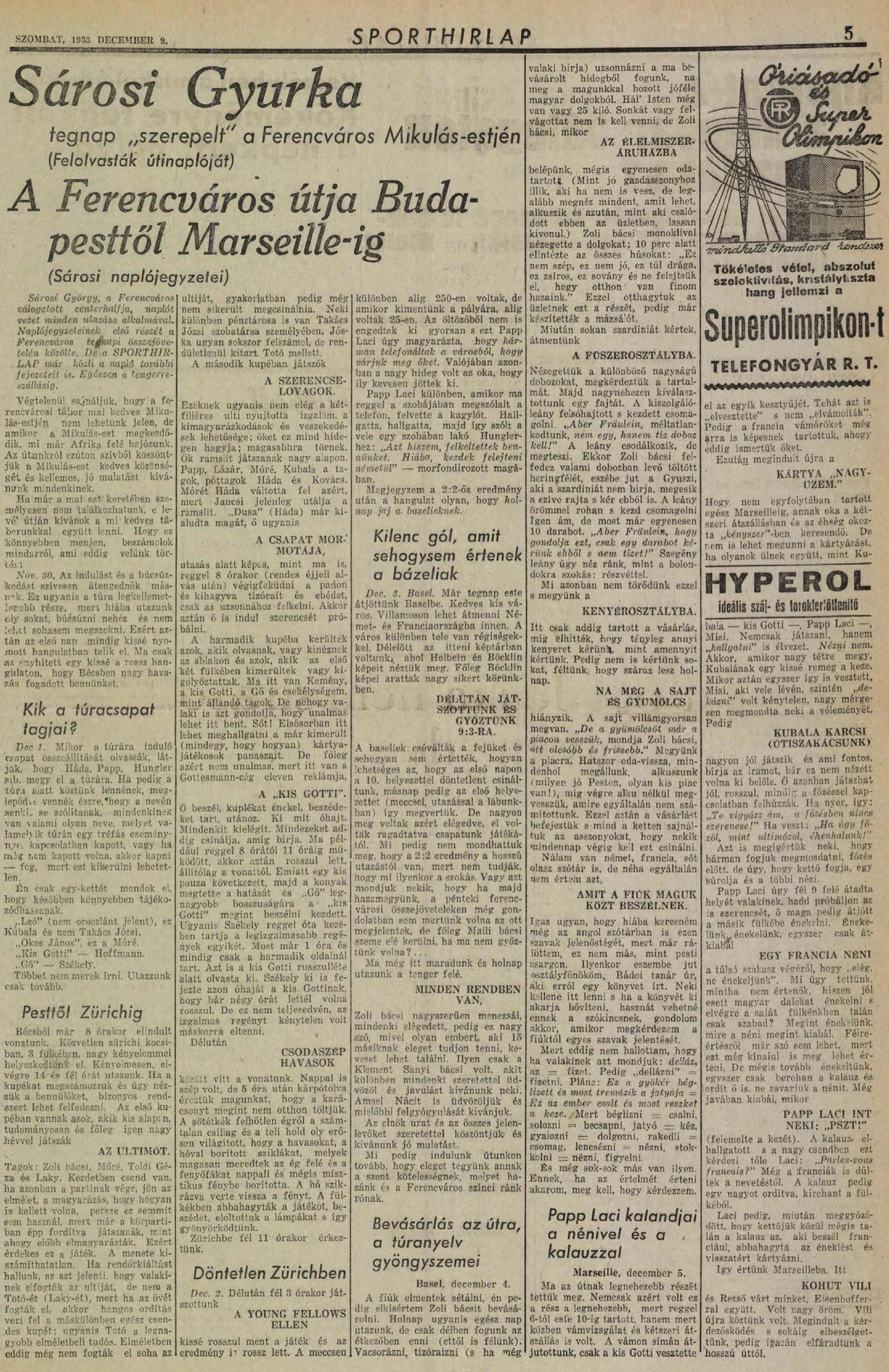 1933.XII.3. FC Basel – Ferencváros 3:9 Közzétéve: 2009. február 2. hétfő | Szerző: K@rcsi A svájci Nemzeti Liga első helyen álló FC Basel ellen hatalmas győzelmet aratott a Fradi Vélemény, hozzászólás? Válasz megszakításaAz e-mail címet nem tesszük közzé. A kötelező mezőket * karakterrel jelöltük Hozzászólás * Név * E-mail cím * Honlap Δ