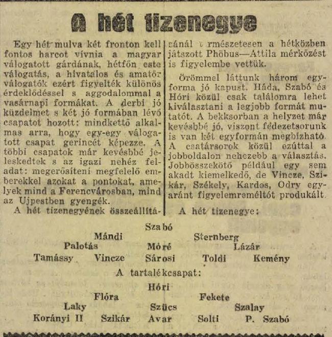 Kategória: 1933/34 | Címke: 1933/34, Kemény Tibor, Lázár Gyula, Móré János, NB1, Sárosi György dr., Toldi Géza, Tóth-Potya István, Újpest (Újpesti Dózsa; Bp. Dózsa; UTE)
