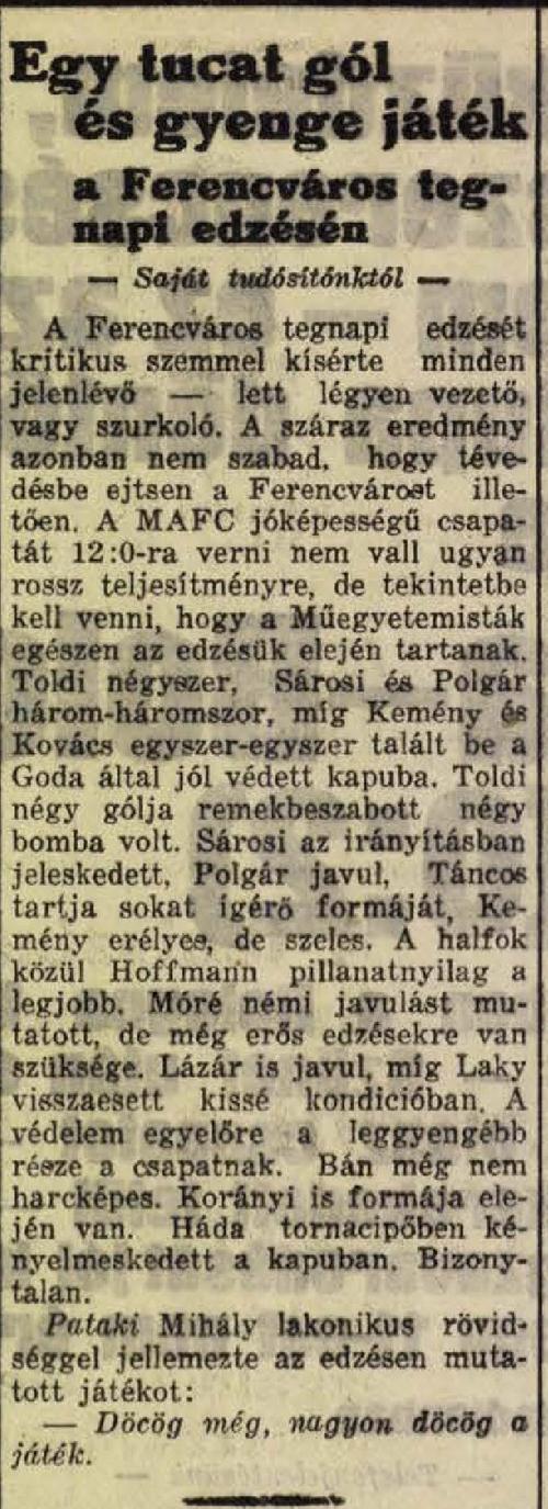 1934.IX.5. Ferencváros – MAFC 12:0 (edzőmérkőzés)