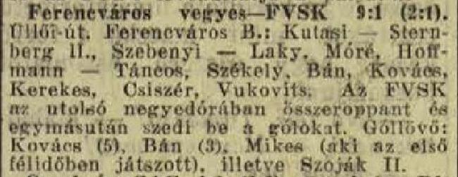 1934.X.7. Ferencváros – FVSK 9:1 (edzőmérkőzés)