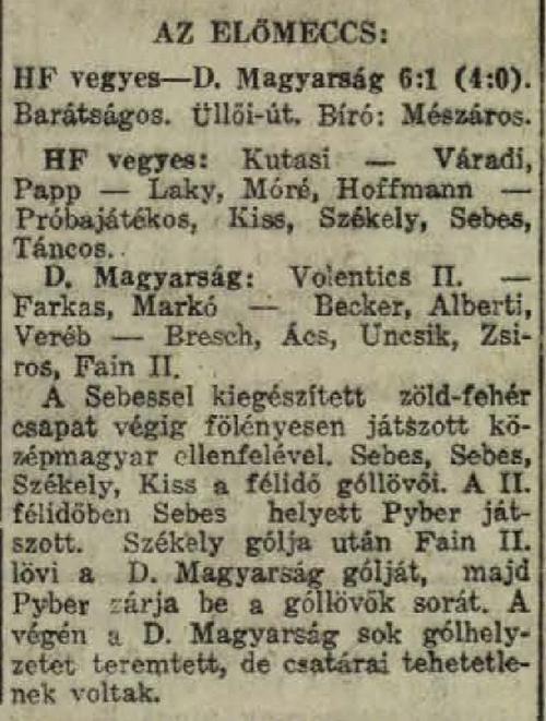 Kategória: 1934/35 | Címke: 1934/35, D. Magyarság, edzőmérkőzés, Kiss Gyula, Sebes Gusztáv