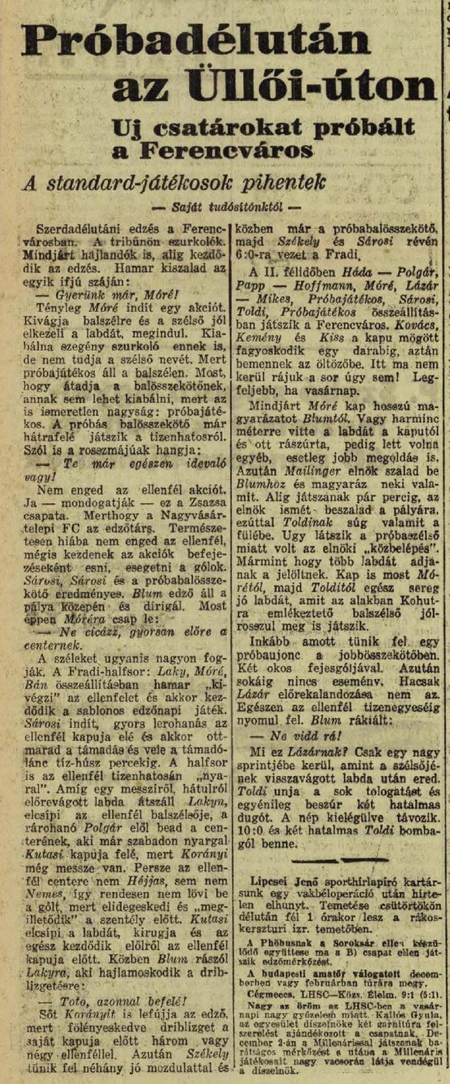 Kategória: 1934/35 | Címke: 1934/35, edzőmérkőzés, Izsák Károly, Nagyvásártelepi FC