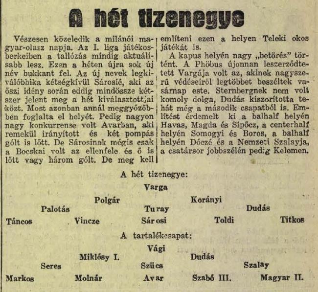 Kategória: 1934/35 | Címke: 1934/35, Bocskay (Debrecen), Keviczky Rezső, Korányi Lajos, mesterhármas, Monostori "Mikes" Károly, NB1, Polgár Gyula, Sárosi György dr., Székely Béla, Táncos Mihály, Toldi Géza, Tunyogi Gyula