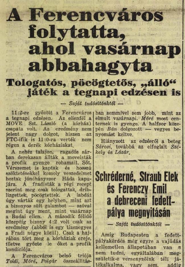 1934.XI.7. Ferencváros – MOVE Szt. László 11:2 (edzőmérkőzés)