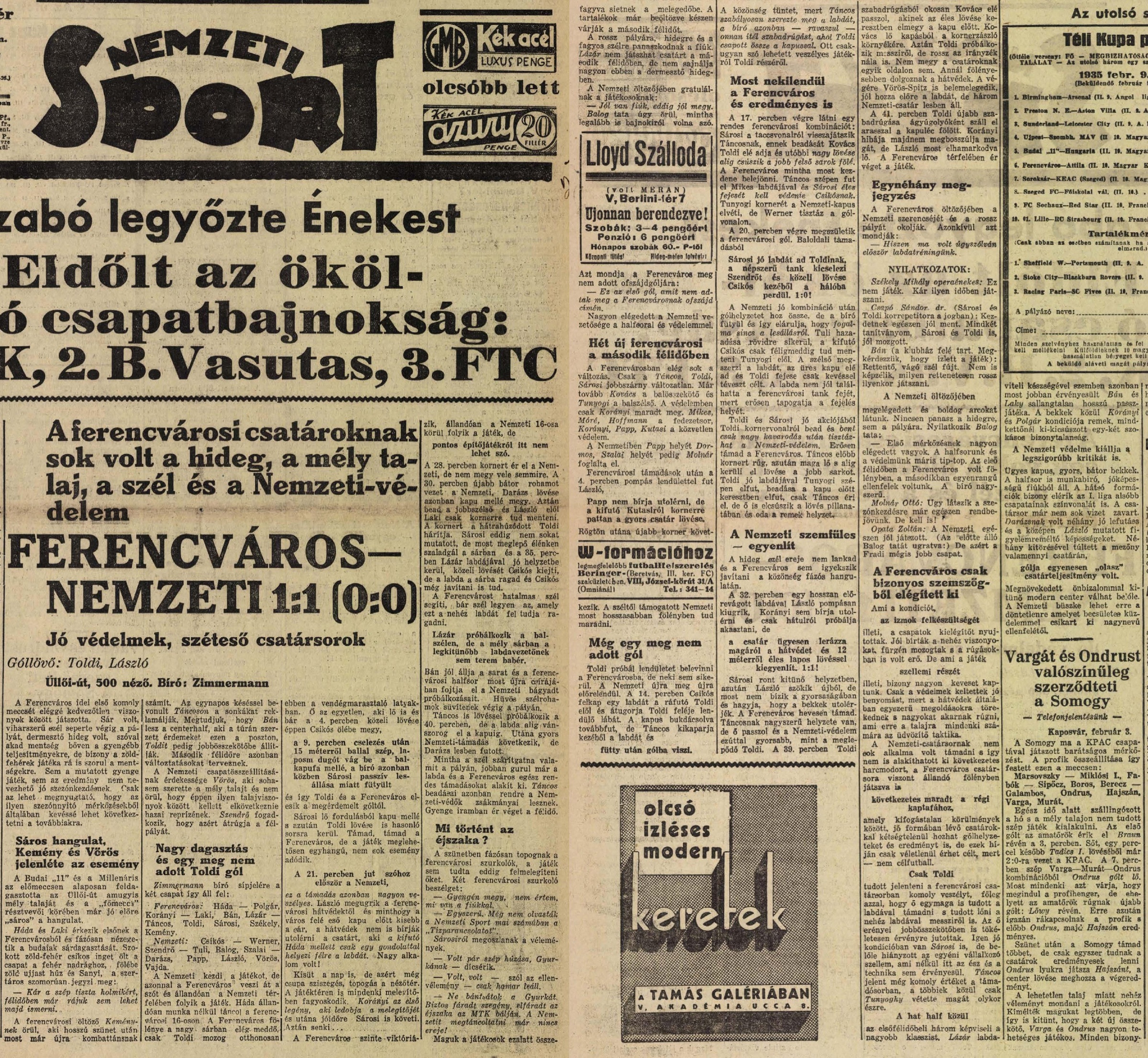 1935.II.3. Ferencváros – Nemzeti 1:1 (edzőmérkőzés) Közzétéve: 2009. február 4. szerda | Szerző: K@rcsi A ferencvárosi csatároknak sok volt a hideg, a mély talaj, a szél és a Nemzeti-védelem Vélemény, hozzászólás? Válasz megszakításaAz e-mail címet nem tesszük közzé. A kötelező mezőket * karakterrel jelöltük Hozzászólás * Név * E-mail cím * Honlap Δ