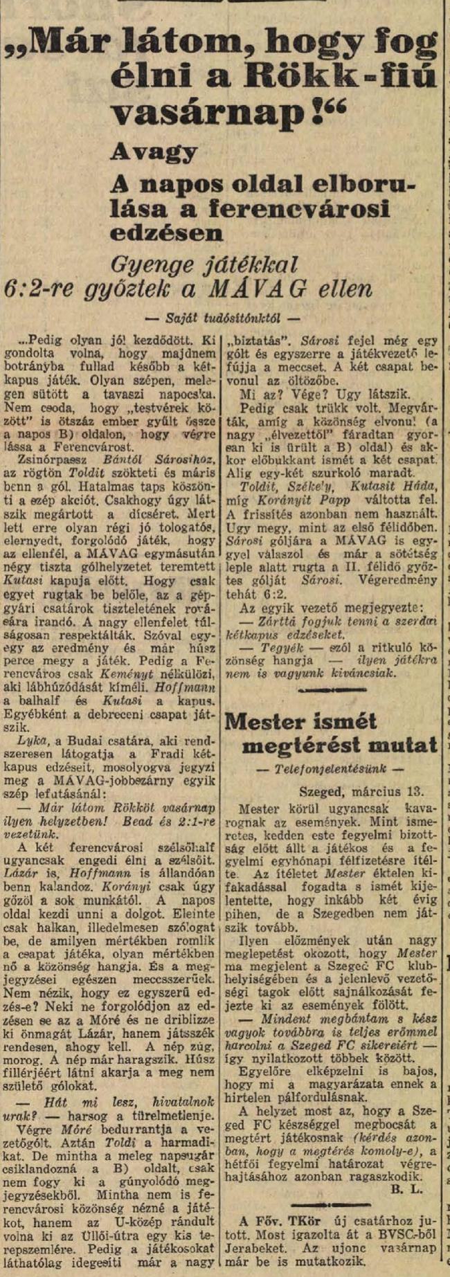 1935.III.13. Ferencváros – MÁVAG 6:2 (edzőmérkőzés)