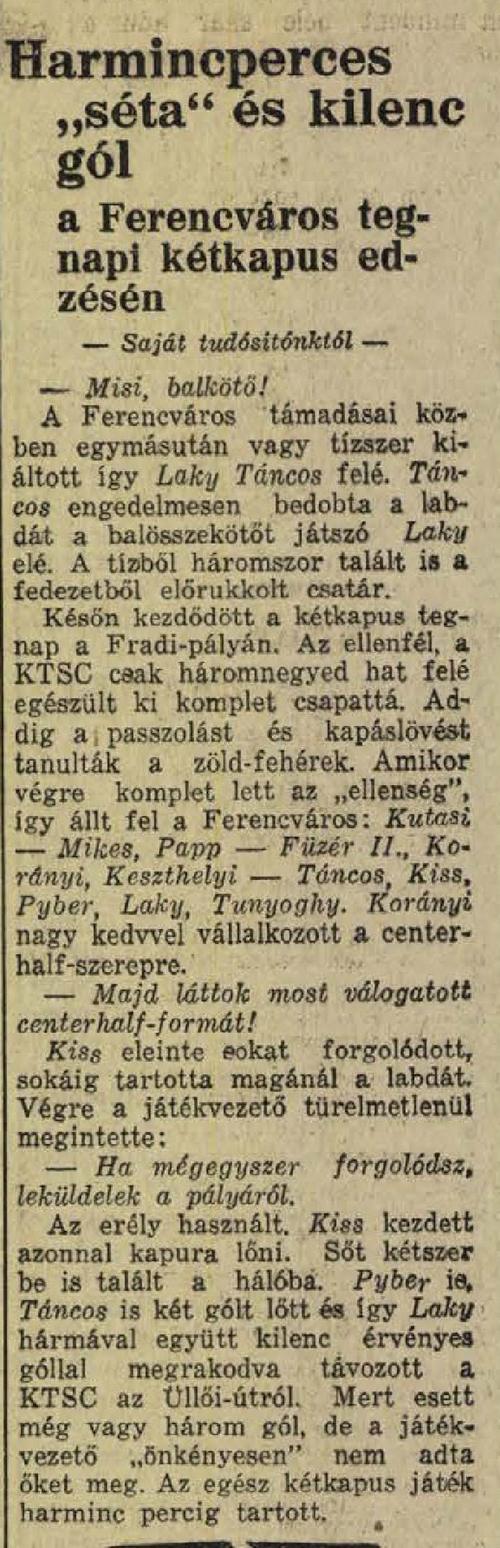 1935.IV.10. Ferencváros – KTSC 9:0 (edzőmérkőzés)