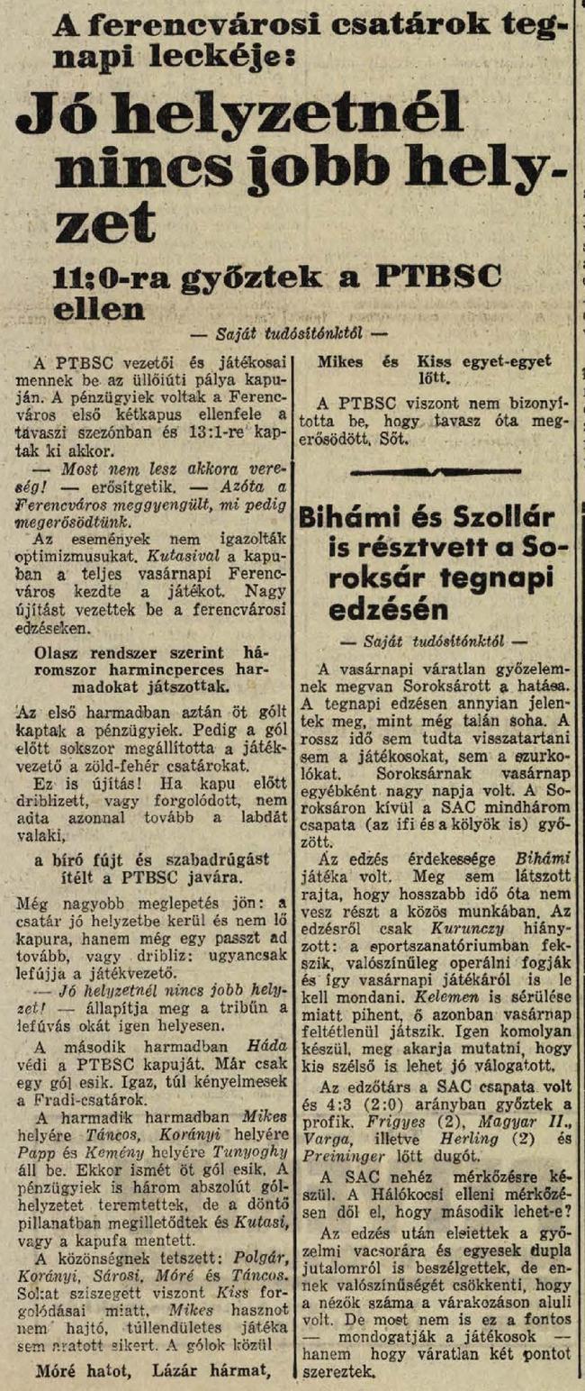 1935.IV.3. Ferencváros – PTBSC 11:0 (edzőmérkőzés)