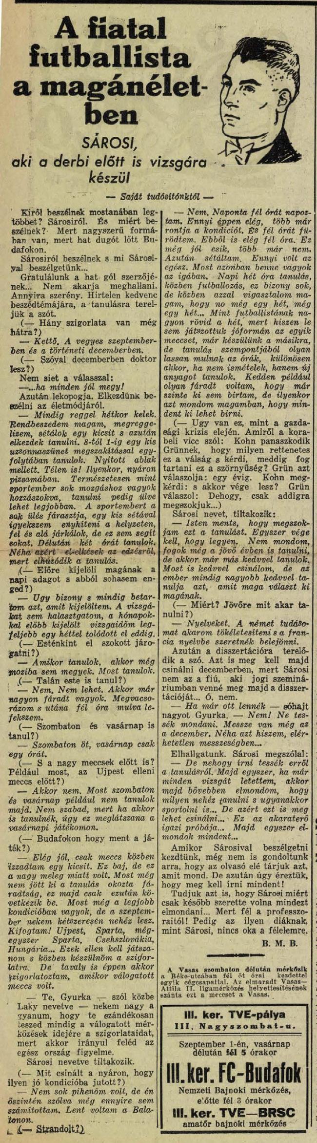 A fiatal futballista a magánéletben: SÁROSI, aki a derbi előtt is vizsgára készül