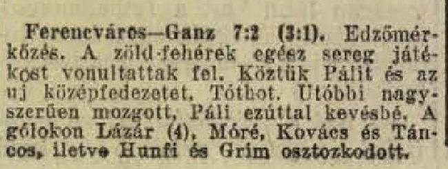 1935.XI.20. Ferencváros – Ganz 7:2 (edzőmérkőzés)