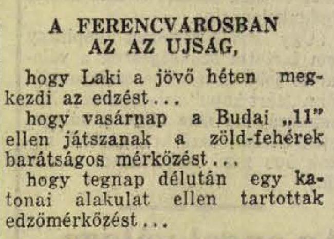 1935.XI.27. Ferencváros – „Páncélosok” ?:? (edzőmérkőzés)