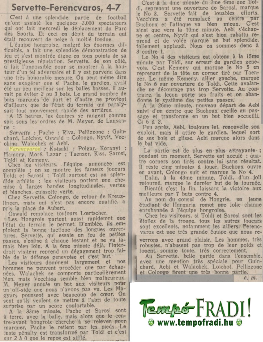 2 hozzászólás a(z) 1935.XII.25. Servette – Ferencváros 4:7 bejegyzéshez