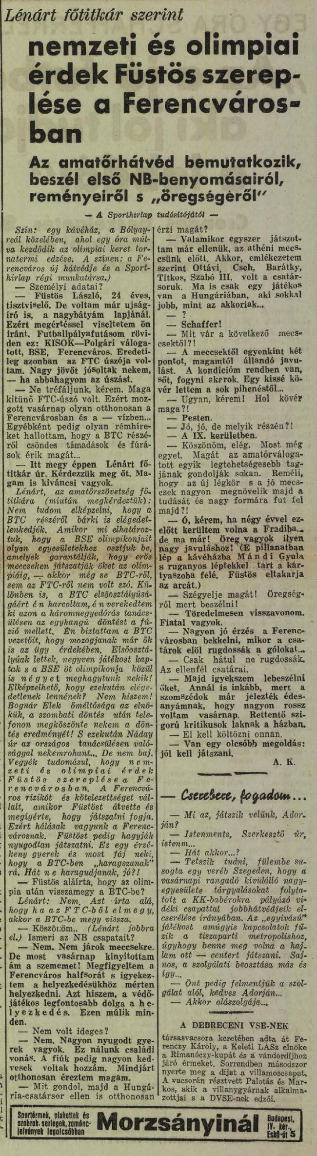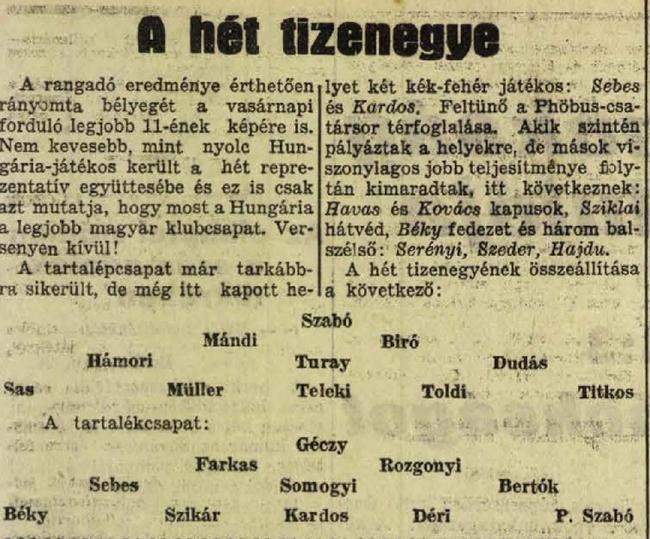 1936.II.2. Ferencváros – SBTC 6:2 Közzétéve: 2009. február 5. csütörtök | Szerző: K@rcsi Egy félidőn át gólképtelen volt a Ferencváros és vesztésre állt Szünet után percek alatt eldőlt a mérkőzés Vélemény, hozzászólás? Válasz megszakításaAz e-mail címet nem tesszük közzé. A kötelező mezőket * karakterrel jelöltük Hozzászólás * Név * E-mail cím * Honlap Δ