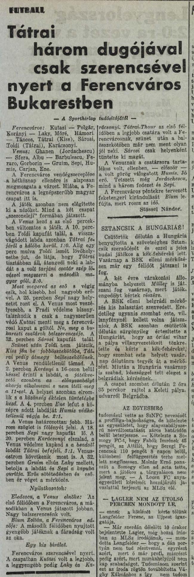 Tátrai három dugójával csak szerencsével nyert a Ferencváros Bukarestben
