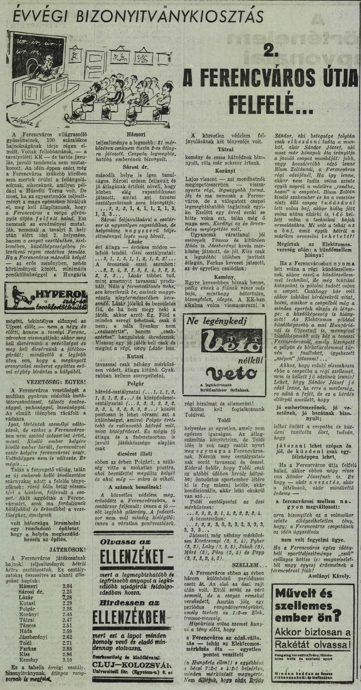 « 1937.VI.2. Ferencváros B) – LHGy ?:? (edzőmérkőzés) 1937.VI.13. KK, Slavia Praha – Ferencváros 2:2 »
