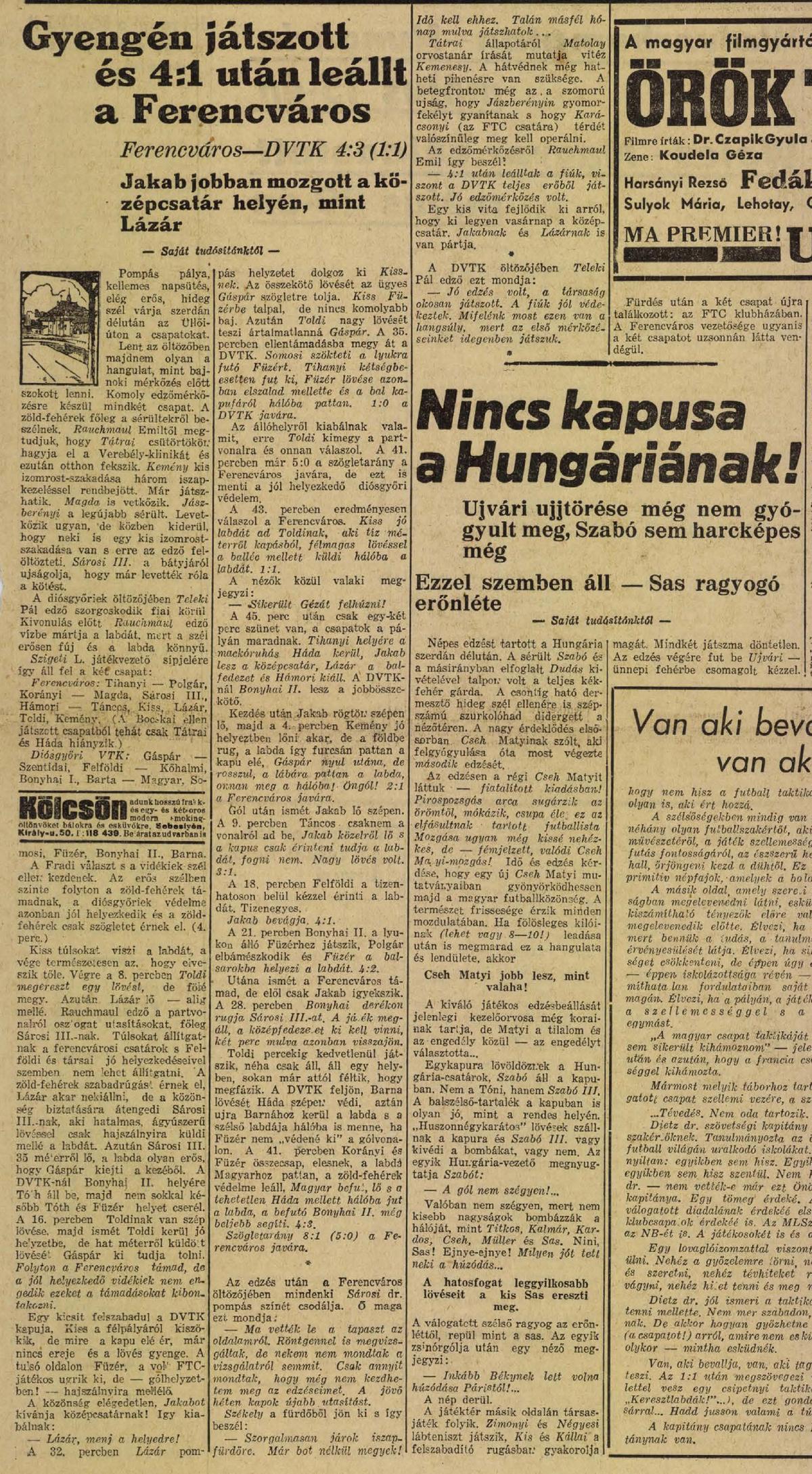 1938.II.23. Ferencváros – DVTK 4:3 (edzőmérkőzés)