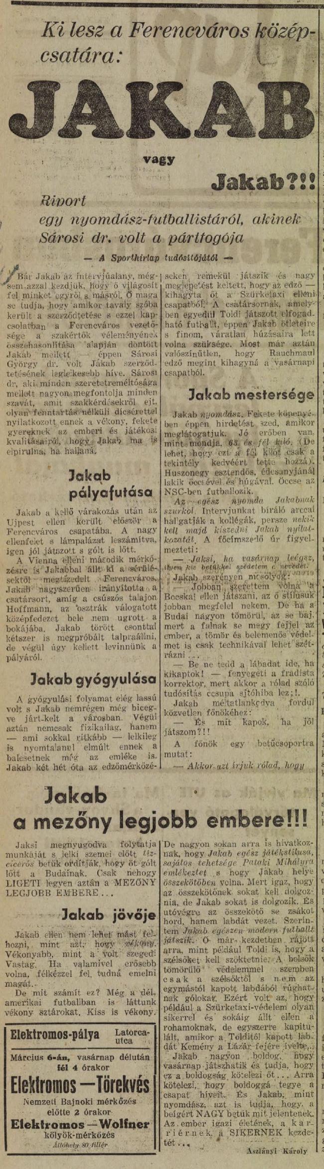 Kategória: 1937/38 | Címke: 1937/38, edzőmérkőzés, Jakab László, Testvériség