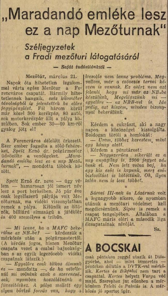 Kategória: 1937/38 | Címke: 1937/38, edzőmérkőzés, Mezőtúri AFC