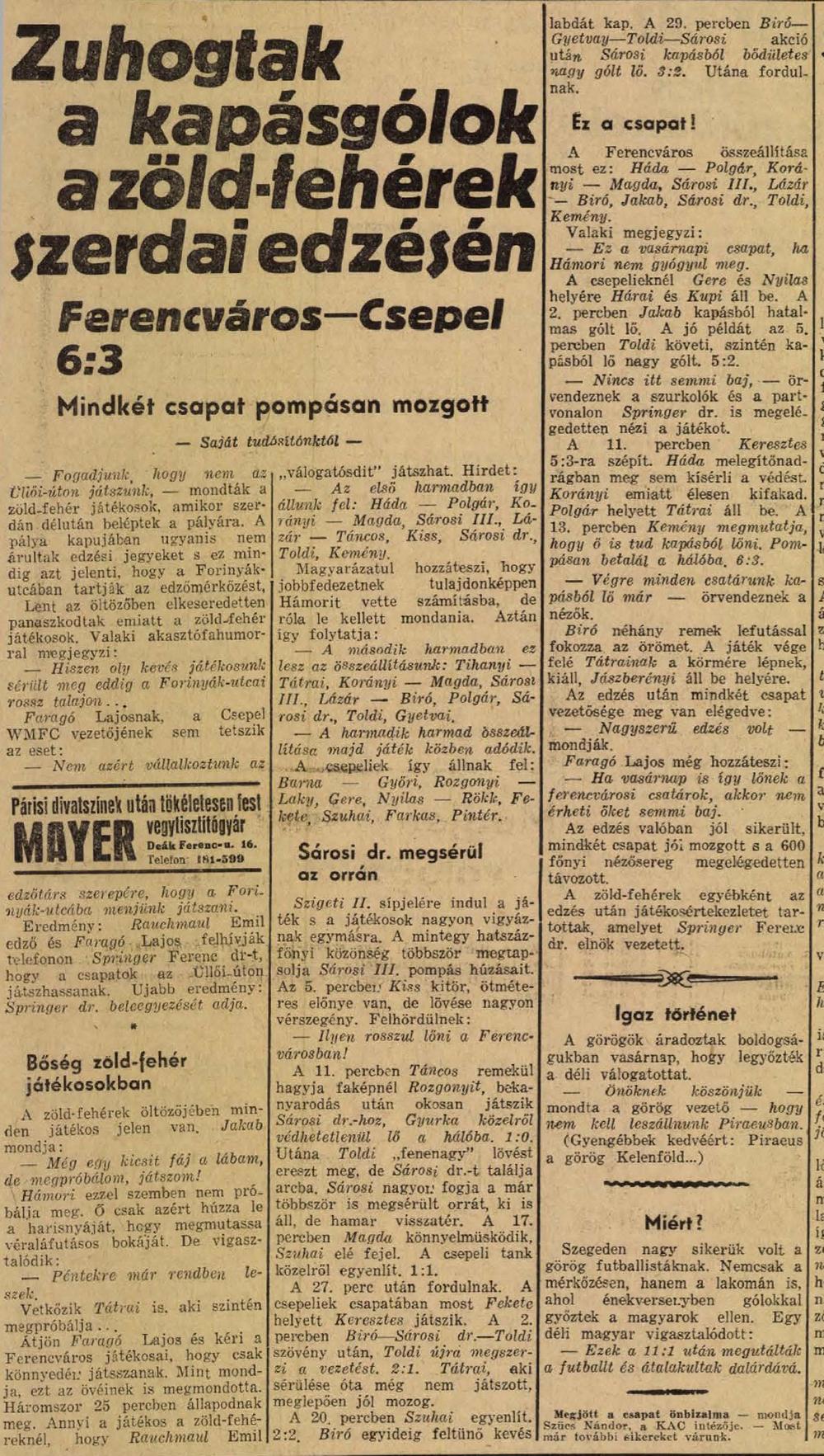 1938.III.30. Ferencváros – WMFC 6:3 (edzőmérkőzés) Közzétéve: 2009. február 7. szombat | Szerző: K@rcsi Zuhogtak a kapásgólok a zöld-fehérek szerdai edzésén Leleplezzük WEISZ ISTVÁNT, a potyajegyesek rémét Hétköznap mosolyogni is tud, de a potyajegyeseket kedden sem szereti Vélemény, hozzászólás? Válasz megszakításaAz e-mail címet nem tesszük közzé. A kötelező mezőket * karakterrel jelöltük Hozzászólás * Név * E-mail cím * Honlap Δ