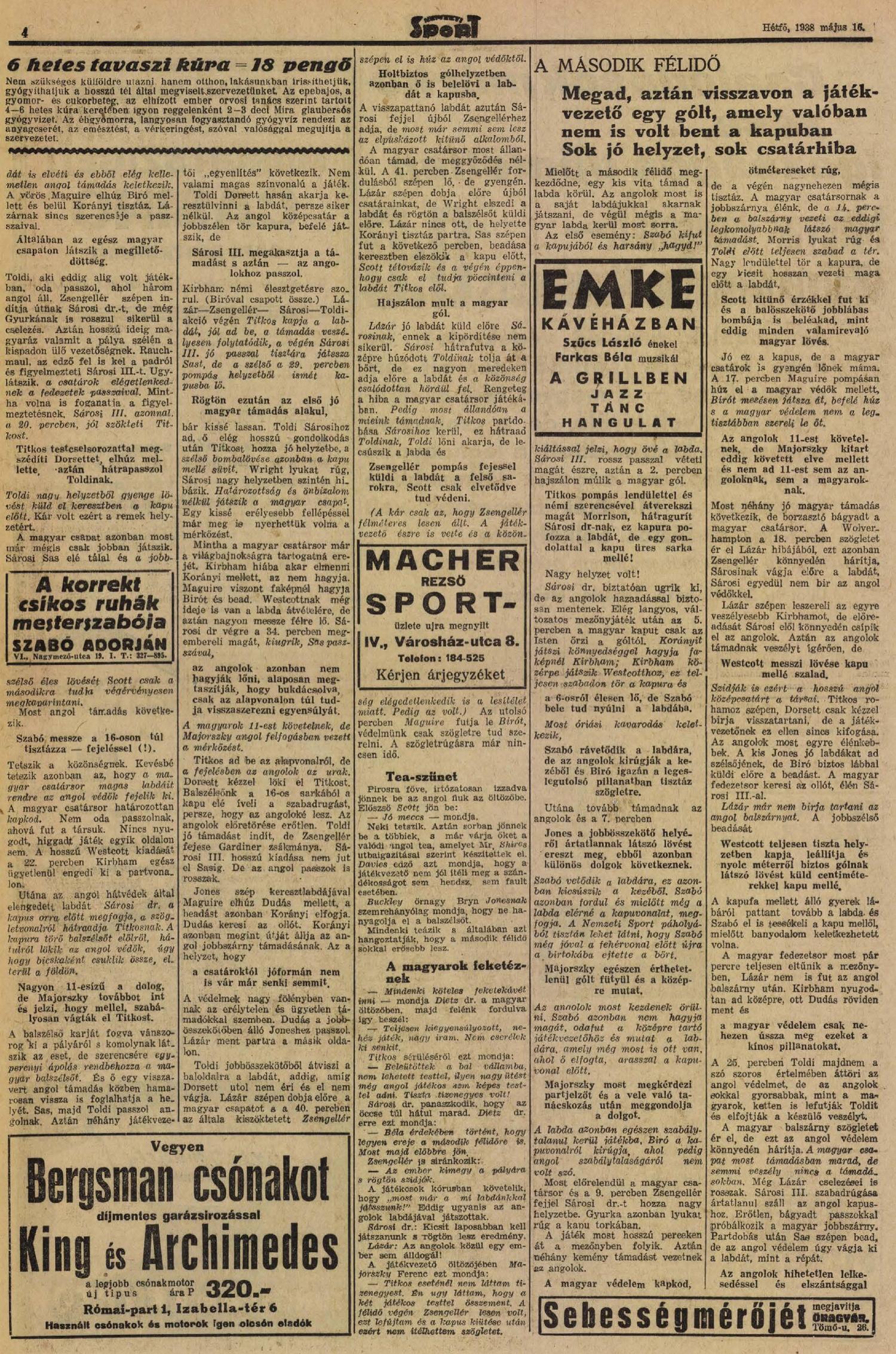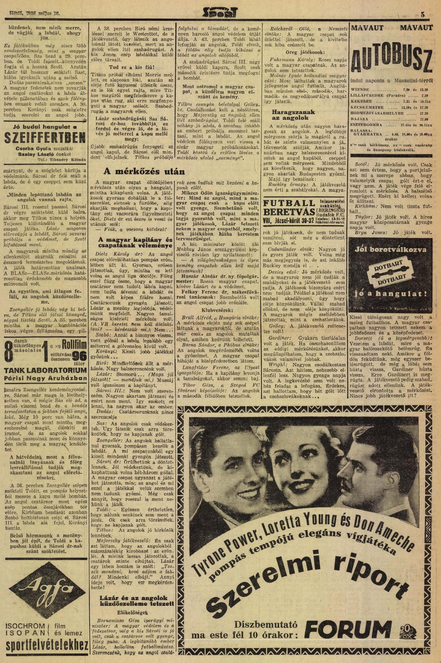 Kategória: 1937/38 | Címke: "nagyegyleti válogatott", 1937/38, 1938, Korányi Lajos, Lázár Gyula, Sárosi György dr., Sárosi III. Béla, Toldi Géza, Wolverhampton