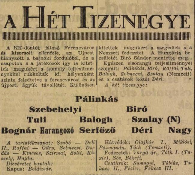 „…A II. félidôben Toldival a szivét, Lí zí rral és Pòsí val a küzdôszellemét, Sí rosi dr.-ral a nyugalmí t talí lta meg a Ferencví ros. …”