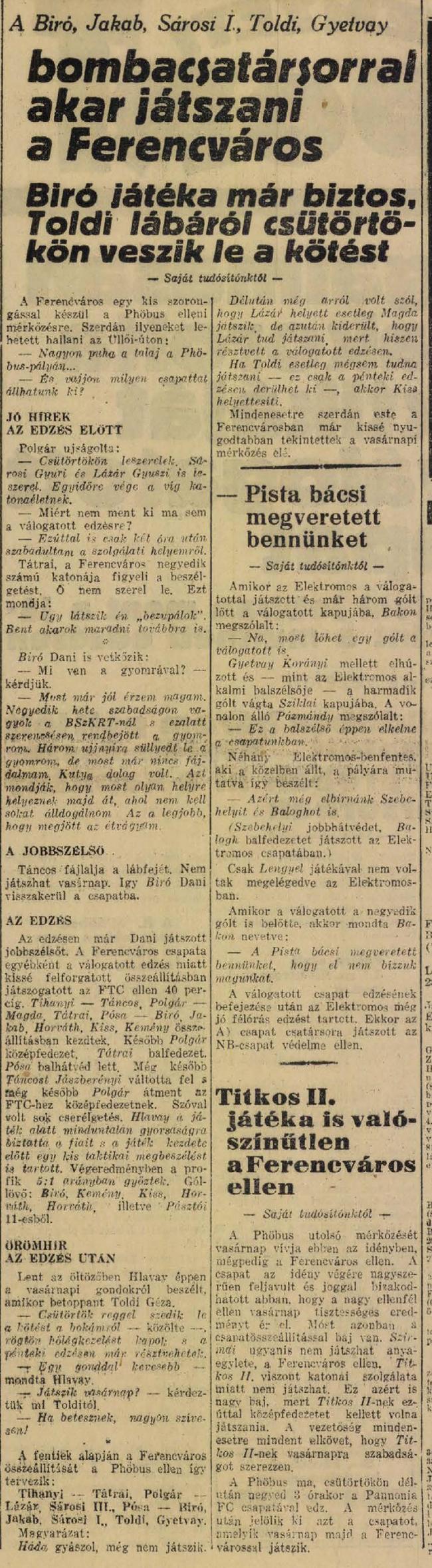 1938.XI.23. Ferencváros – FTC 5:1 (edzőmérkőzés)