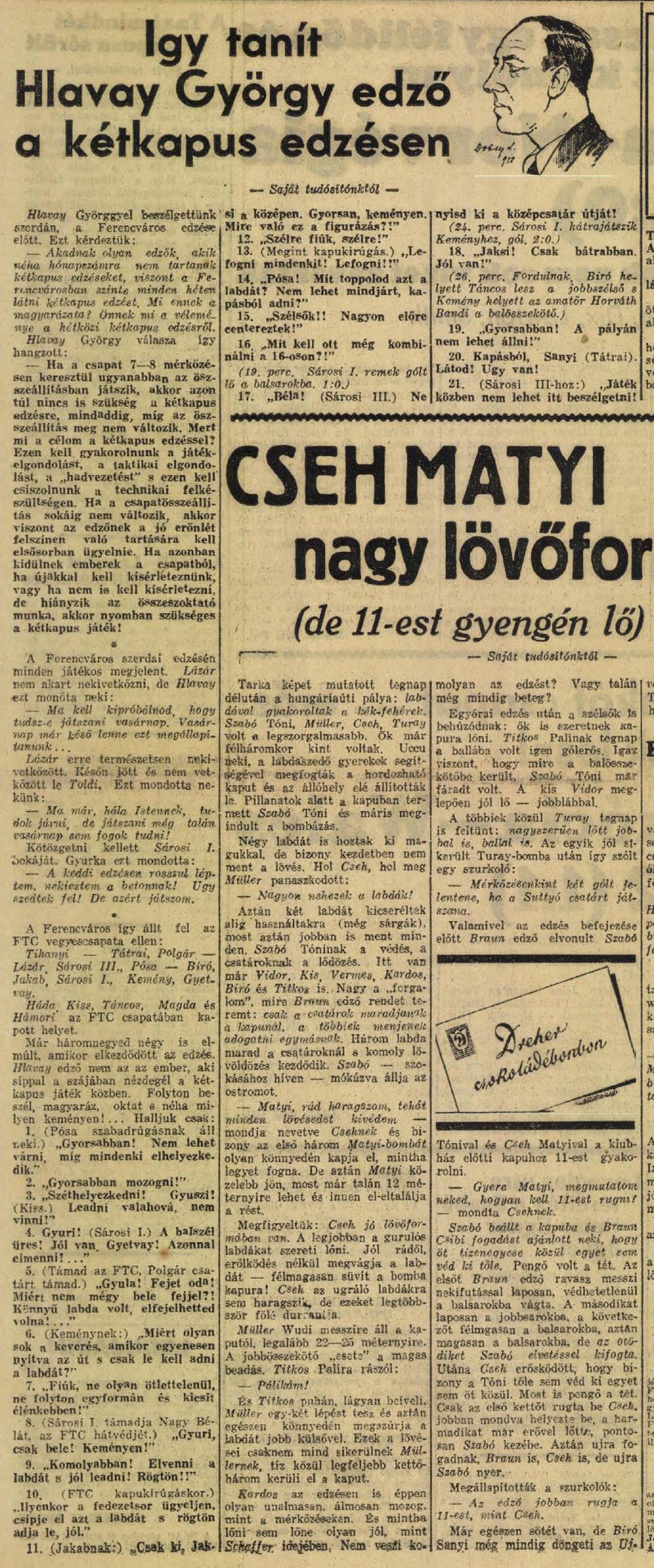 1938.XI.9. Ferencváros – FTC vegyes 2:0 (edzőmérkőzés)