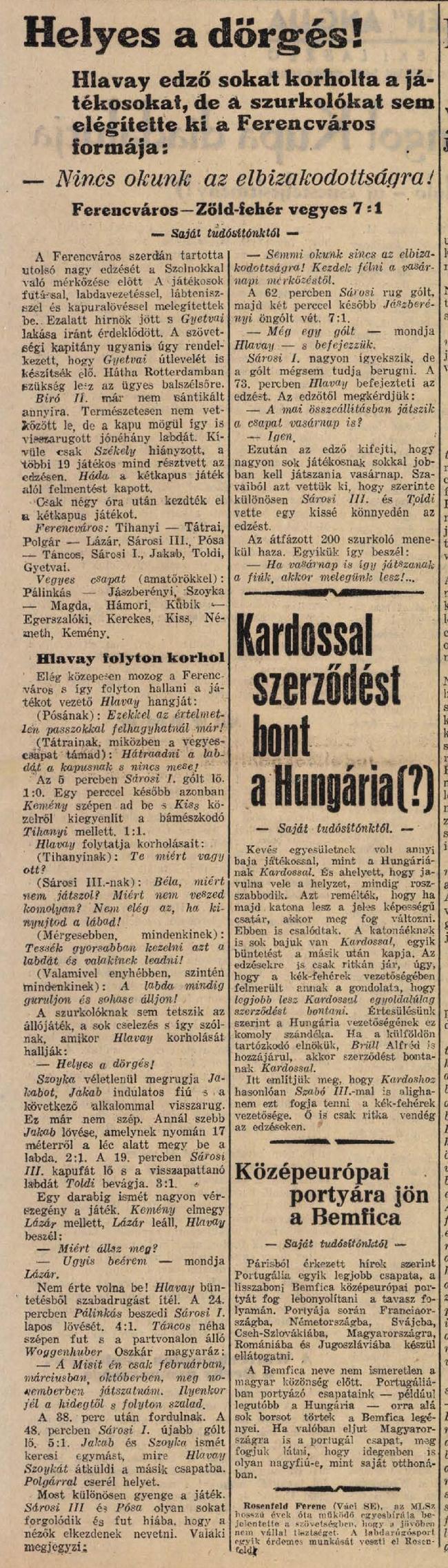 1939.II.15. Ferencváros – Zöld-fehér vegyes 7:1 (edzőmérkőzés)