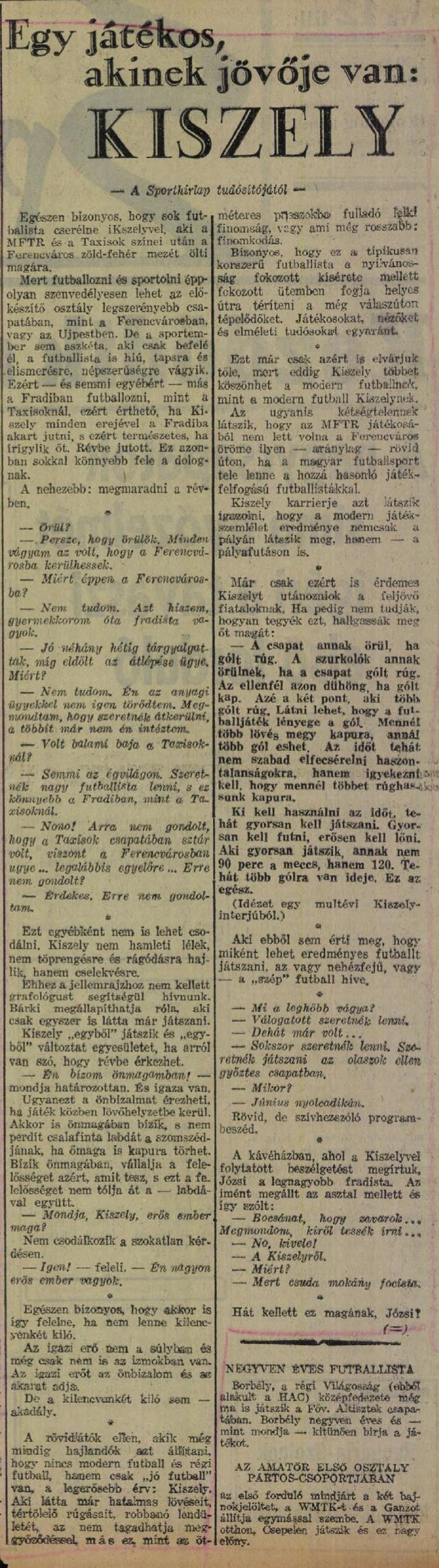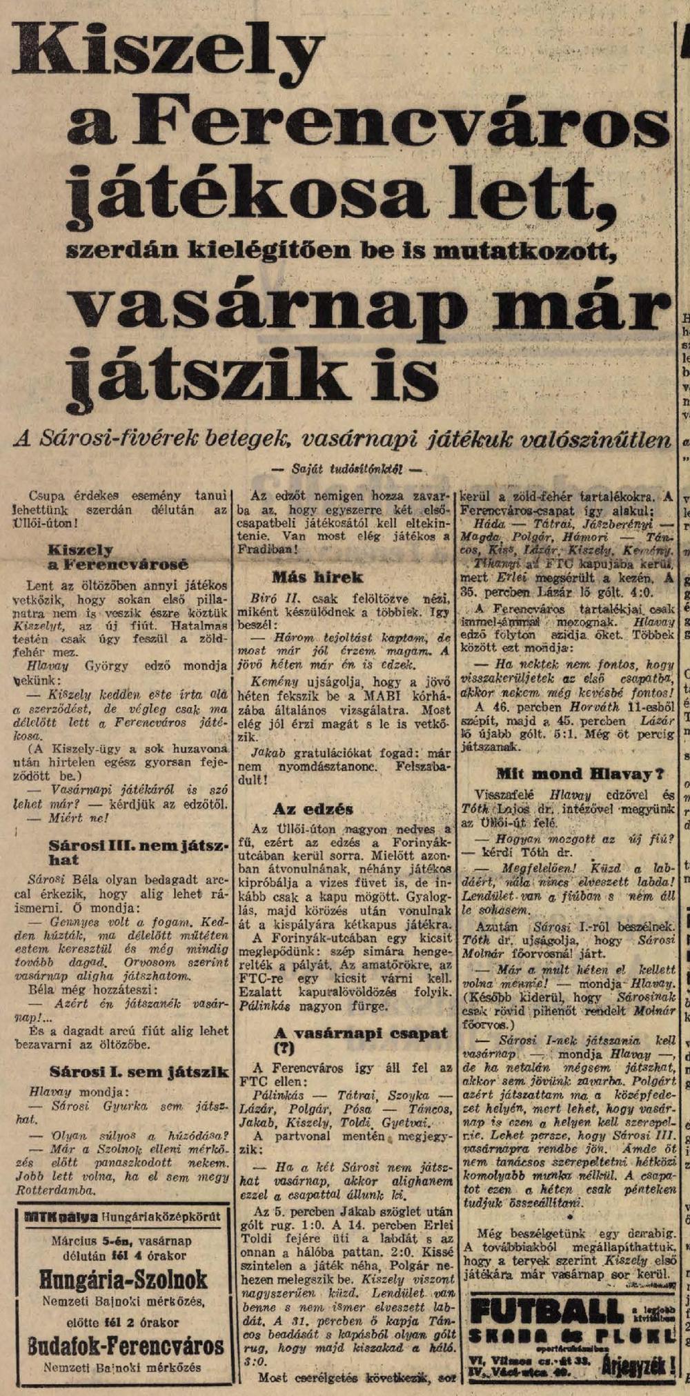 1939.III.1. Ferencváros – FTC 5:1 (edzőmérkőzés) Közzétéve: 2009. február 8. vasárnap | Szerző: K@rcsi Kiszely a Ferencváros játékosa lett, szerdán kielégítően be is mutatkozott, vasárnap már játszik is Vélemény, hozzászólás? Válasz megszakításaAz e-mail címet nem tesszük közzé. A kötelező mezőket * karakterrel jelöltük Hozzászólás * Név * E-mail cím * Honlap Δ