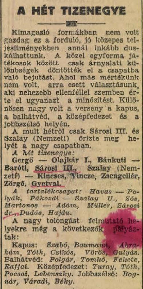 Kategória: 1939/40 | Címke: 1939/40, Ábrahám József, Gyetvai László, Gyurcsó János, Kiszely István, NB1, Sárosi György dr., Sárosi III. Béla, Szeged