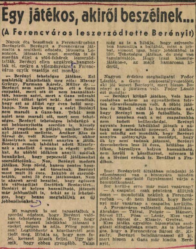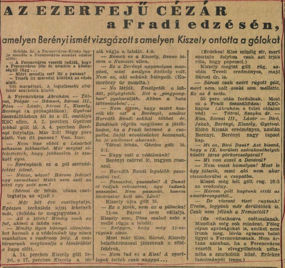 Kategória: 1939/40 | Címke: 1939/40, Bäderlein (Berényi) Károly, edzőmérkőzés, KSC