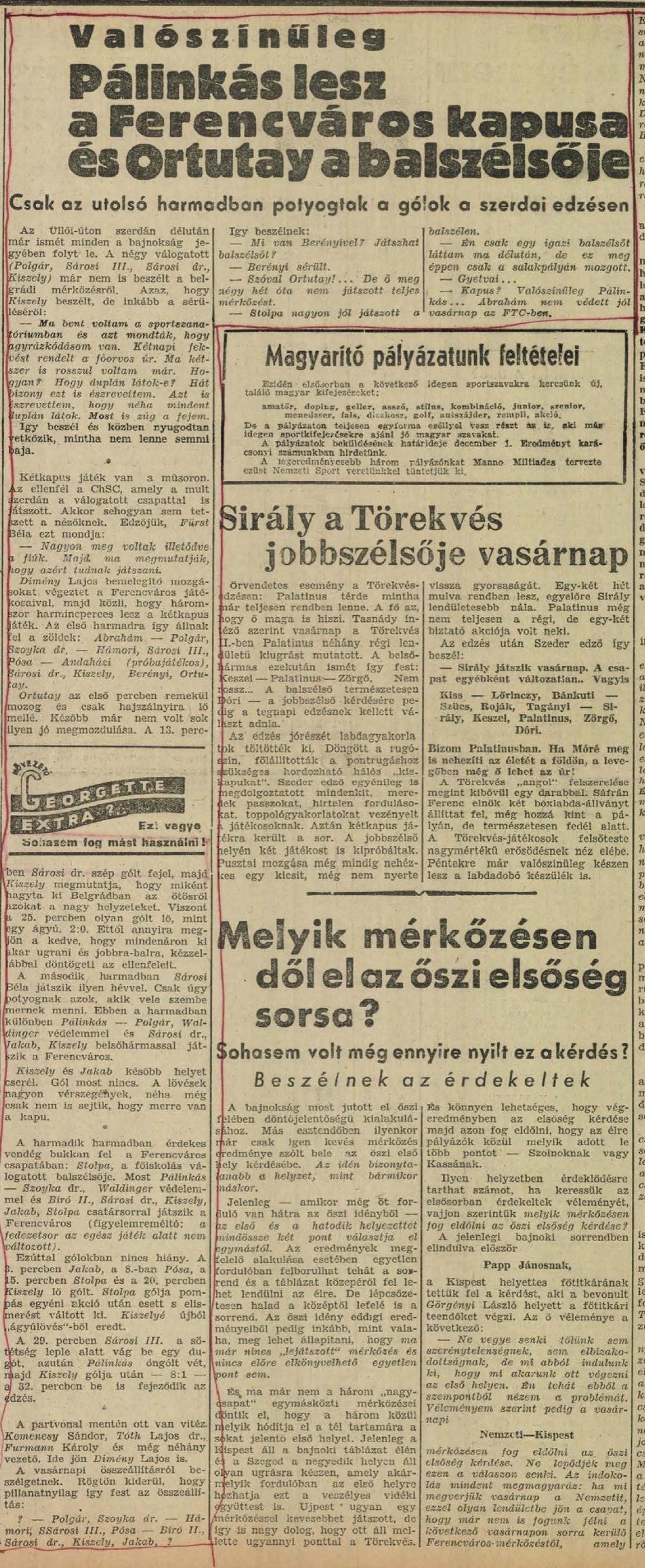1939.XI.15. Ferencváros – ChSC 8:1 (edzőmérkőzés)