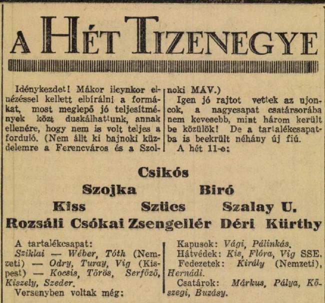 Kategória: 1938/39 | Címke: 1938/39, Gyetvai László, Jakab László, NB1, Sárosi György dr., Szolnoki MÁV, Trenka László