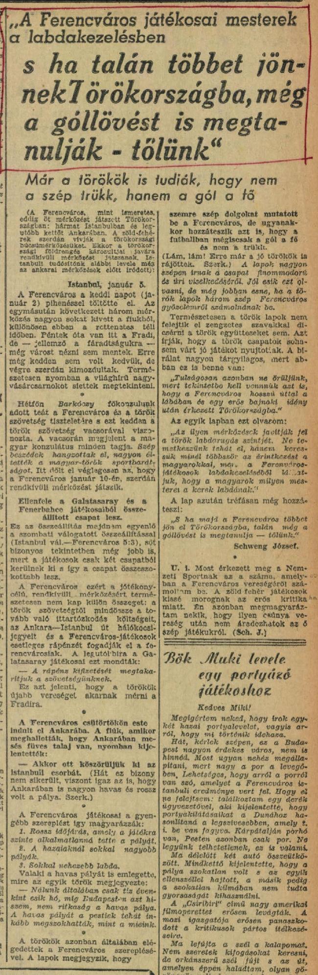 1940.I.1. Isztambul válogatott – Ferencváros 2:2