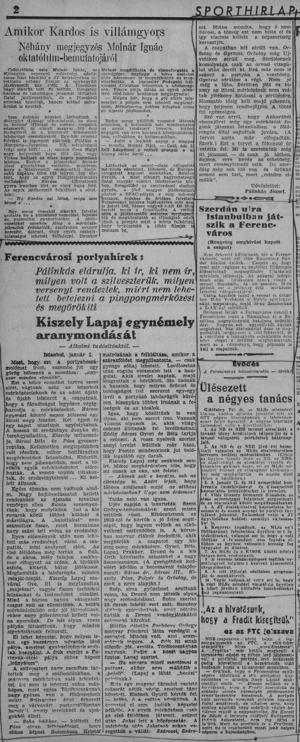 Kategória: 1939/40 | Címke: 1939/40, Isztambul válogatott, nemzetközi mérkőzés, öngól, Pálinkás József dr., Polgár Gyula, Sárosi György dr., Sárosi III. Béla